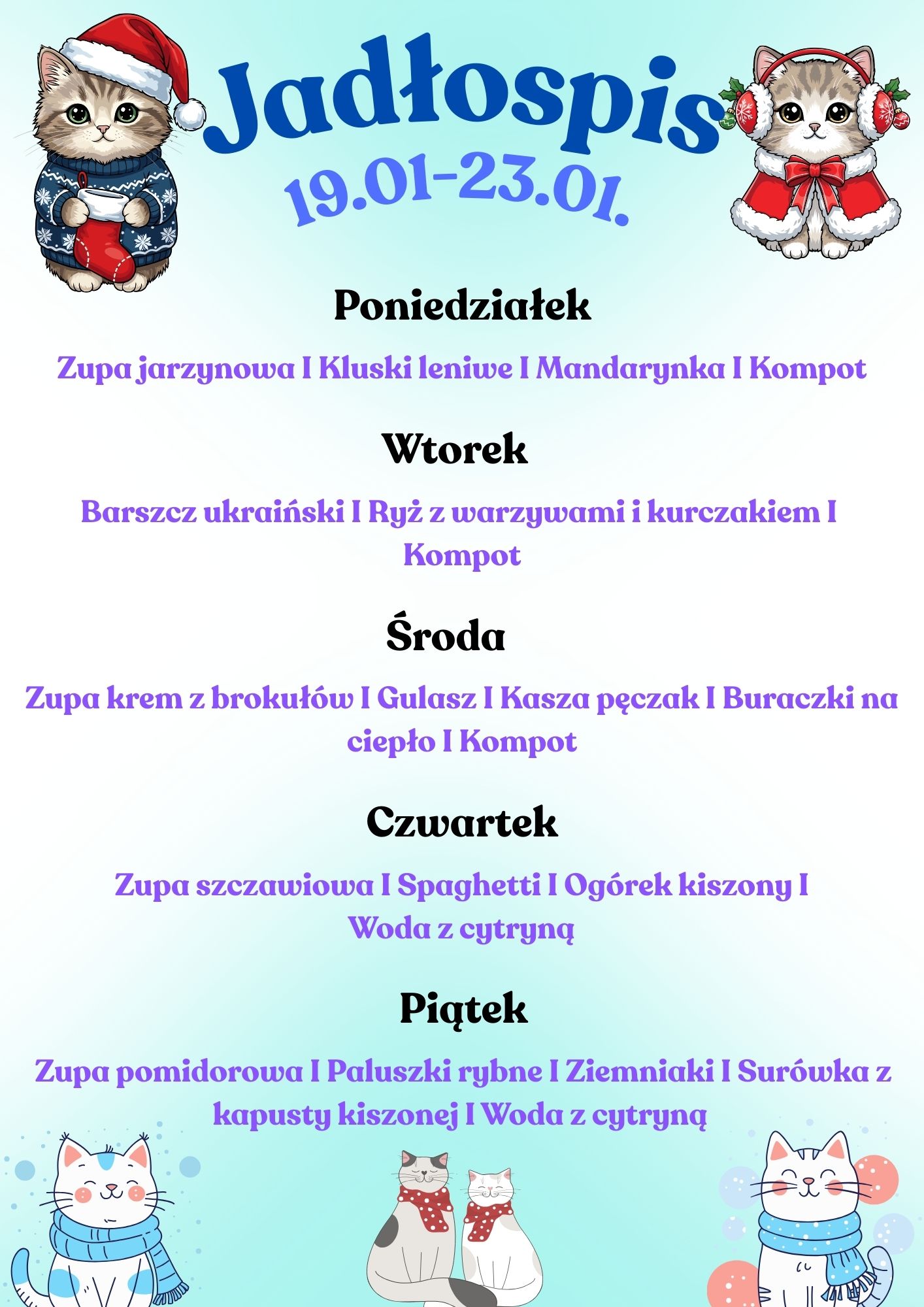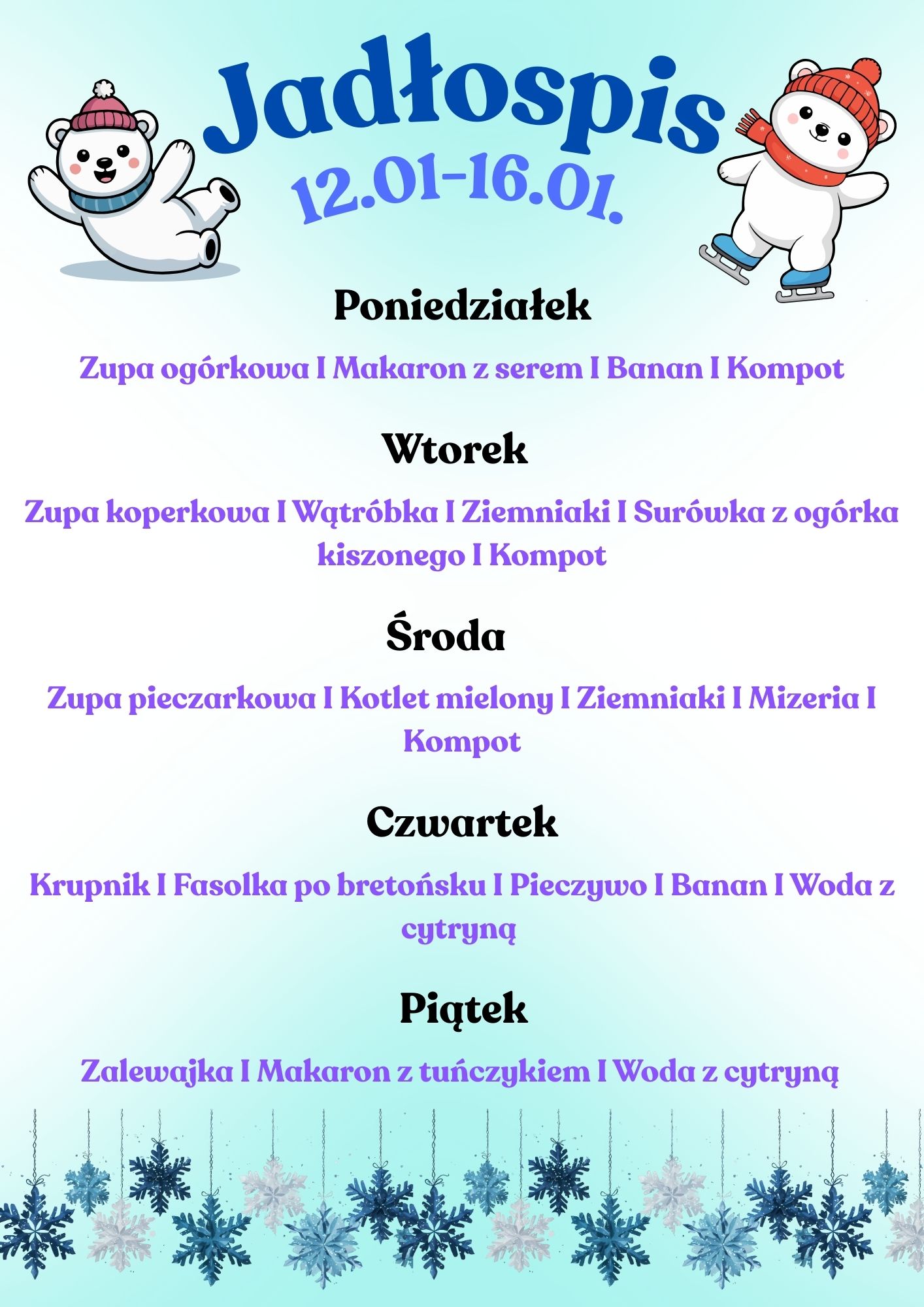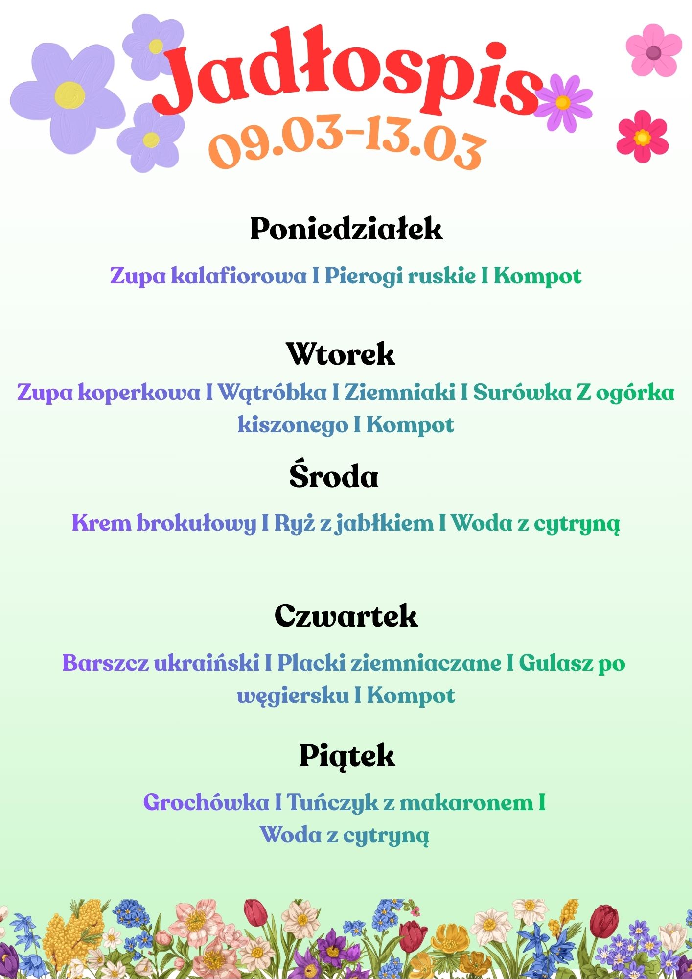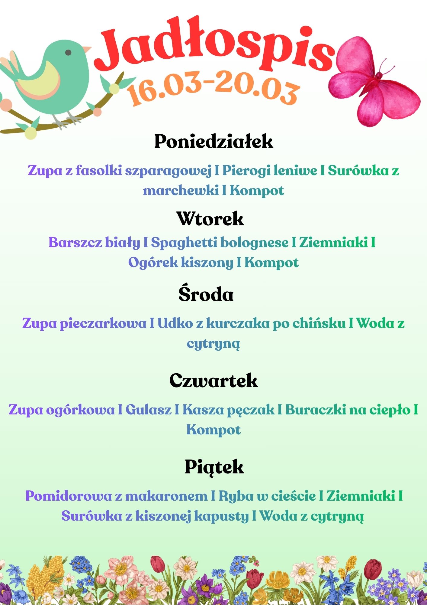 *Jadłospis może ulec zmianie z przyczyn niezależnych od szkoły.